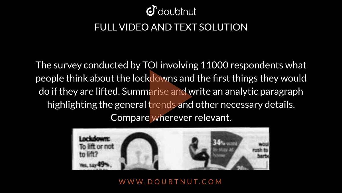 The Survey Conducted By Toi Involving 11000 Respondents What People Think About The Lockdowns And The First Things They Would Do If They Are Lifted Summarise And Write An Analytic Paragraph Highlighting