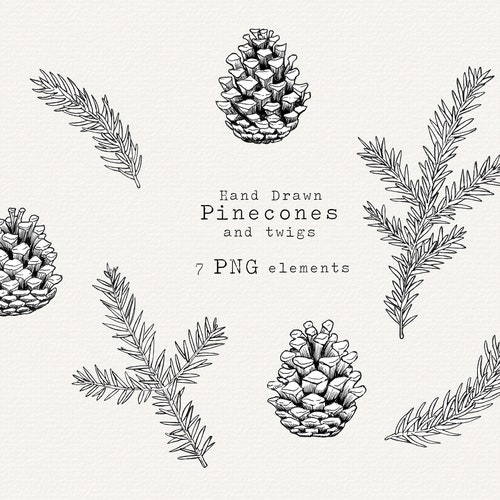 Pine Cone Clip Art Hand Drawn Christmas Clip Art Pine Etsy